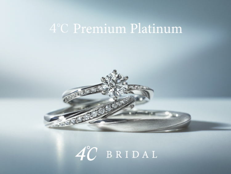 1972 年のブランド誕生以来約50 年、多くの花嫁を輝かせ愛されてきた4℃のブライダル専門店では最高の着け心地と、世界中から厳選した高い品質のダイヤモンドと素材、300 種類以上の指輪の中から専門知識をもつアドバイザーが運命の指輪探しをお手伝いいたします。